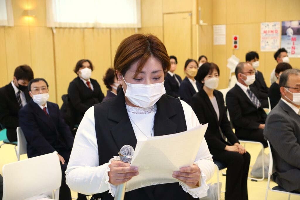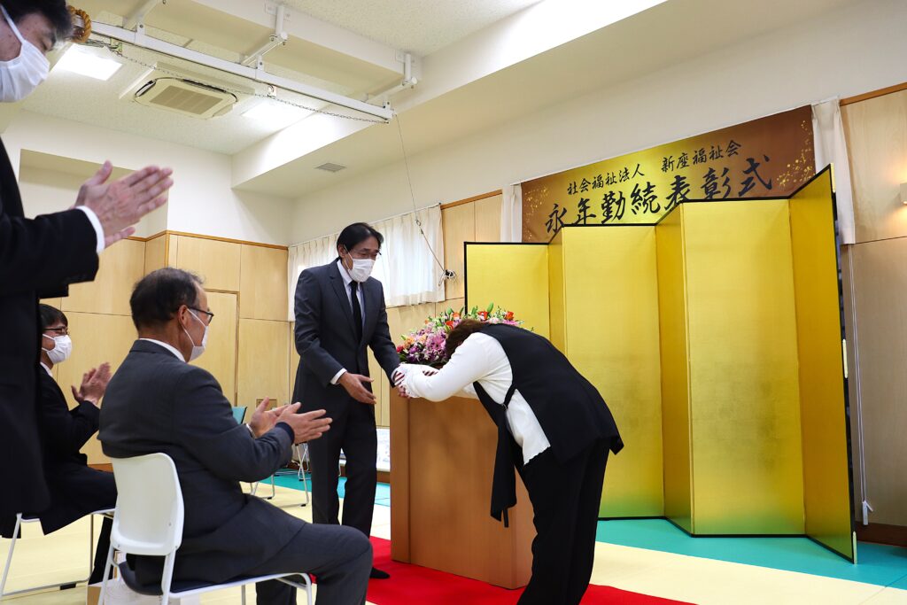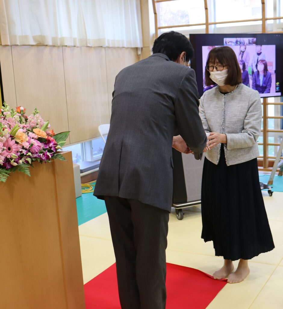 表彰対象職員に、長きにわたり、法人運営に尽力した労に対し、ねぎらいの言葉がありました。